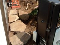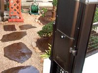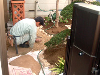 花壇の植栽を請けたまわりました。他のお客様からもご要望が多い、成長が遅くて手間がかからないもの キャラ、ベニシダレモミジを植樹。特に良いキャラが手に入り現在も良好に生育しています。稀少な根府川石とのマッチングも良好。半日陰もあり、ジンチョウゲ等の樹種を選定しました。多少気難しい木ですが、数本の枯れ替え後は良好に生育しています。現在も年に2回ほど手入れに伺っております。。